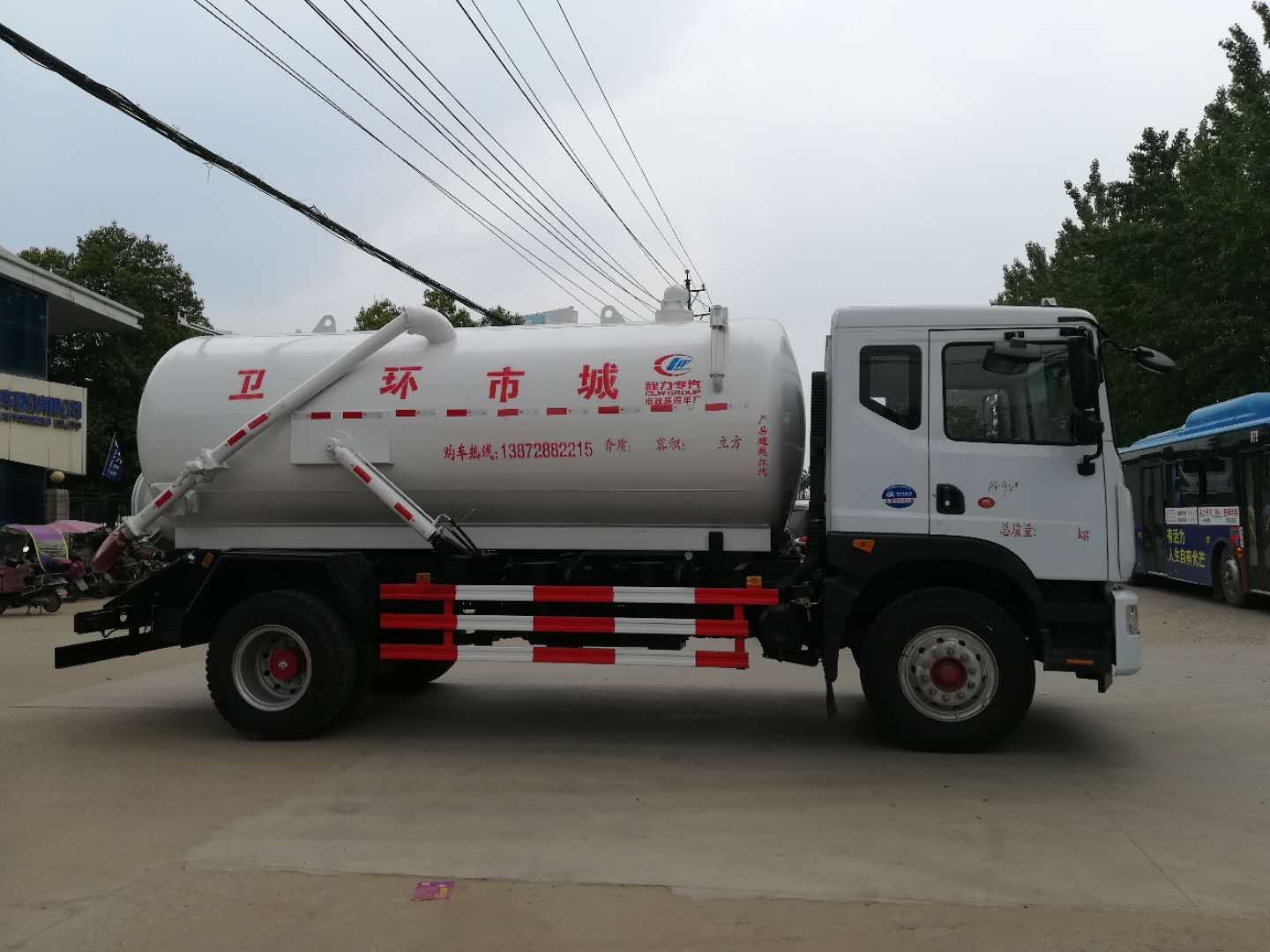 風D9吸污車罐體形狀為圓柱形,采用武鋼6mm厚優質碳鋼鋼板,罐體前部帶吸污窗,洗手裝置,舉升裝置,吸污管8米一根,罐體多種顏色選擇,其余按廠內標準配置制作。隨車配置大功率真空吸污泵和優質液壓系統,罐體封頭一次壓鑄成型、罐體可后開、雙頂自卸。罐內污物可通過后蓋直接傾倒,具有真空度高(比吸糞車的吸力更大)、噸位大、效率高、用途更廣泛的特點。(垂直吸程:≥8 m,工作壓力:8500Pa,理論抽速:120L/S,軸功功率:≤13kw,進排氣口徑:50mm抽滿罐時間<5 min排滿罐時間<4min。吸污車采用大功率真空泵,一次壓鑄成型的封頭-,加厚的抗壓罐體,雙頂液壓系統,是比吸糞車功能更強大的車型。下面是山東濰坊用戶再次到湖北程力訂購12方吸污車發車圖片: