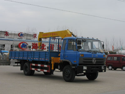 隨車起重機和底盤組合在一起的一種運輸車輛。是由起重臂、轉臺、機架、支腿等部分組成。通過變幅、伸縮、回轉、卷揚等機構的動作來實現隨車吊的機械動作,通過不同動作的組合實現起重作業。