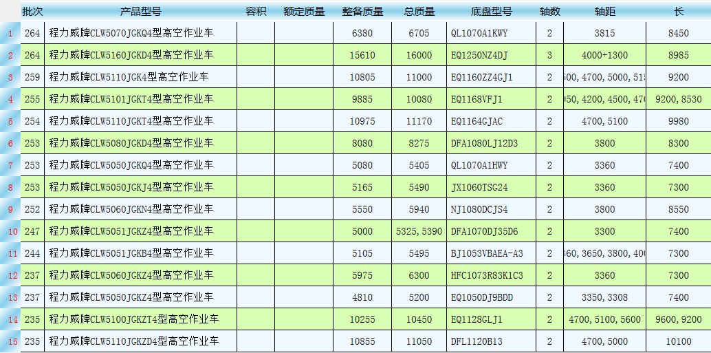 湖北程力高空作業車國四公告車型有哪些?