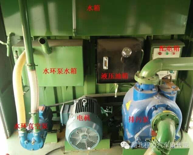 湖北程力污水處理車主要由:夾心取力器、排污泵(出口)、水環(huán)真空泵、齒輪泵、多路閥、柱塞馬達(dá)、圓筒濾網(wǎng)、無軸螺旋、污水分離箱、攔截箱、防溢閥、視糞管、電機(jī)、配電柜(配有漏電保護(hù)器、相序保護(hù)繼電器)、LED宣傳屏等組合而成。