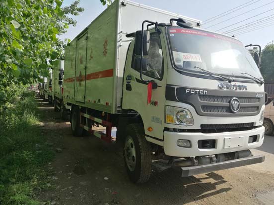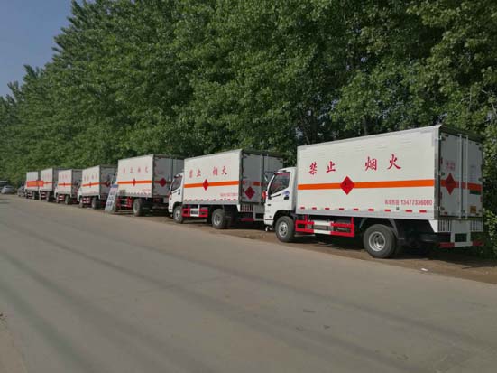 湖北程力公司專業生產東風系列,江鈴系列,江淮系列,北汽奧鈴系列,福田時代系列,北汽歐曼系列,慶鈴系列,解放系列等爆破器材運輸車,廂體為雙層金屬骨架結構,外部為冷扎鋼板,內壁采用鋁合金板蒙面,夾層為隔熱阻燃材料填充。設置對開門,如需安裝抗暴容器則增開側門,側壁設有防雨功能自然通風窗口,以使廂內外空氣流動,廂體內部做防靜電處理,廂體底部與廂內前部鋪有阻燃導靜電膠板,并與底盤等電位連接,通過車輛后端的導靜電裝置與大地相連,可防止靜電火花的產生和車輛靜電及時釋放,提高車輛的安全性。廂體內部前面和側面裝有固定拉環,與捆綁帶使用捆綁貨物以避免移動,保證安全。其產品的可靠性、穩定性、性價比在同行業中處于領先地位,被譽為炸藥運輸車的無冕之王。