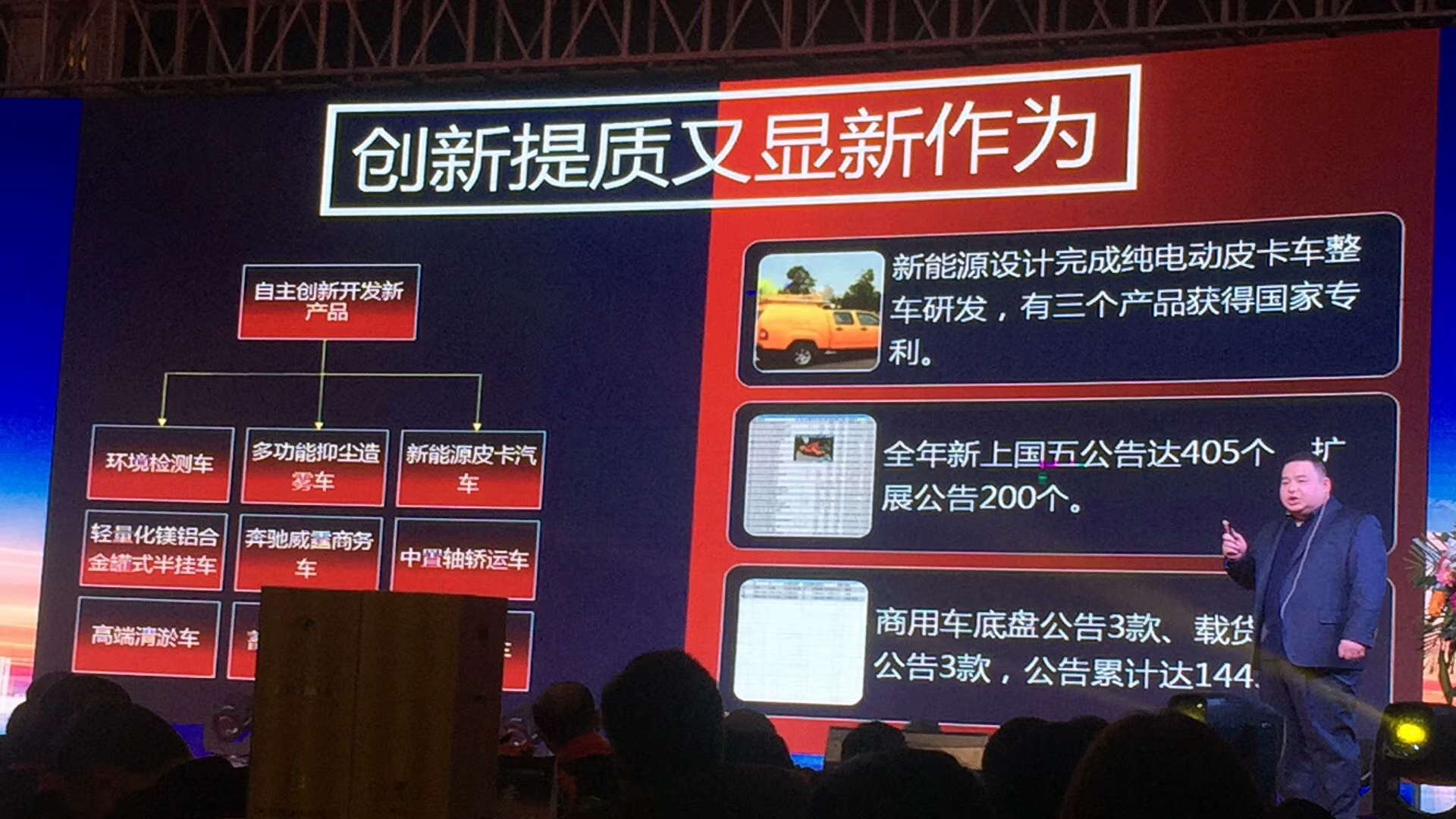 自主創新開發新產品:環境監測車、多功能抑塵造霧車、新能源皮卡汽車、輕量化鎂鋁合金罐式半掛車、奔馳威霆商務車、中置軸轎運車、高端清淤車、蓄能供熱車、清淤運輸車!