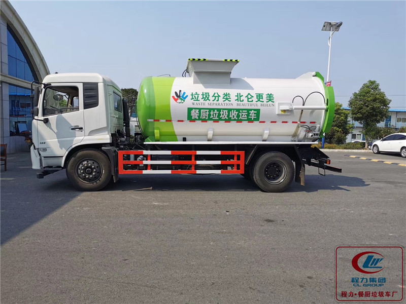12立方東風(fēng)天錦餐廚垃圾車配置:手動(dòng)和電動(dòng)兩種操作方式,揚(yáng)州中梅多路換向閥,合肥長源液壓油泵,國內(nèi)知名液壓油缸,翻轉(zhuǎn)機(jī)構(gòu)配備240L垃圾桶,后蓋開啟排料方式和罐體舉升排料方式。餐廚垃圾車裝載由垃圾桶提升系統(tǒng)完成,該系統(tǒng)具有垃圾桶鎖止結(jié)構(gòu),裝卸安全可靠。垃圾桶與垃圾投入口銜接好,保證裝卸過程中餐廚垃圾不溢撒、不遺漏。 液壓系統(tǒng)由泵、液壓閥和順序閥以及各種功能的液壓油缸、高低壓管路組成。關(guān)鍵部件可選用原裝進(jìn)口,保證產(chǎn)品工作可靠、安全。承載餐廚泔水容積為圓形罐體,工作時(shí)通過提升機(jī)將餐廚垃圾桶提升至罐體投料口;將桶內(nèi)垃圾倒進(jìn)罐體內(nèi),待罐體內(nèi)部垃圾積攢滿后,將車輛開至處理廠;通過車體外部手動(dòng)操作或駕駛室內(nèi)部電控旋鈕操作系統(tǒng)開區(qū)液壓后蓋,泄出罐體內(nèi)部的混合垃圾,待罐體內(nèi)部無固液垃圾流出后;操作罐體舉升功能將殘余垃圾泄出。為防止污染環(huán)境和遺留異味,每日工作完成后應(yīng)用清水將罐體內(nèi)部清洗干凈。