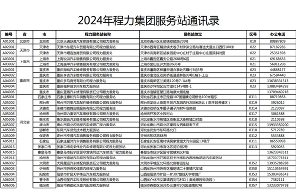 程力汽車北京、天津、上海、重慶、河北、山西服務站通訊錄: