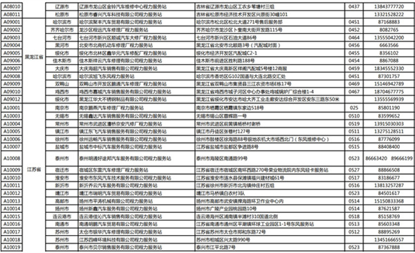 汽車黑龍江省、江蘇省服務站通訊錄: