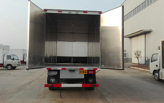 2、廂體分為兩部分:A:運(yùn)輸炸藥;B:運(yùn)輸雷管(防爆罐防爆箱);C:炸藥,雷管同時運(yùn)輸(廂體必須隔倉,分倉運(yùn)輸,加裝防爆罐防爆箱)。廂體為雙層金屬骨架結(jié)構(gòu),外部為冷扎鋼板,內(nèi)壁采用鋁合金板蒙面,夾層為隔熱阻燃材料填充。設(shè)置對開門,如需安裝抗暴容器則增開側(cè)門,側(cè)壁設(shè)有防雨功能自然通風(fēng)窗口,以使廂內(nèi)外空氣流動,廂體內(nèi)部做防靜電處理,廂體底部與廂內(nèi)前部鋪有阻燃導(dǎo)靜電膠板,并與底盤等電位連接,通過車輛后端的導(dǎo)靜電裝置與大地相連,可防止靜電火花的產(chǎn)生和車輛靜電及時釋放,提高爆破器材運(yùn)輸車的安全性。廂體內(nèi)部前面和側(cè)面裝有固定拉環(huán),與捆綁帶使用捆綁貨物以避免移動,保證安全。