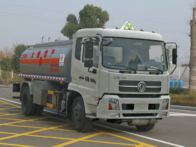 運輸介質品名:二異丙胺,密度:0.7噸/立方米,危險品類項號:3;罐體有效容積:13.49立方米;整車長(mm): 7900,對應軸距(mm):4500,對應罐體外形尺寸(長/長軸/短軸)(mm):5200/2300/1550。整車長(mm): 8600,對應軸距(mm):4700,5000,對應罐體外形尺寸(長/長軸/短軸)(mm):5800/2200/1450。駕駛室前臉選裝擾流罩。防護材料:Q235A碳鋼,連接方式:左右側面及后下部防護均采用焊接連接,后部防護斷面尺寸(mm):100×50,后部防護離地高度(mm):500。安裝限速裝置,限速80km/h。該車安裝帶有衛星定位功能的行駛記錄儀。僅采用前盤制動器和安裝ABS以及前置消聲器的底盤。僅采用子午線輪胎。 ABS生產廠家:WABCO,型號:4460043200和ABS生產廠家:東風電子科技股份有限公司制動系統公司,型號:3631010-C2000。