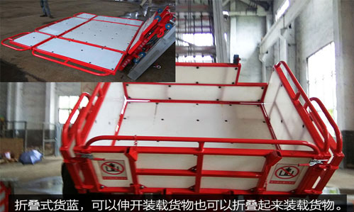 折疊式貨藍,可以伸開裝載貨物也可以折疊起來裝載貨物。搬家時,有時候東西特別多,放不下的時候就可以直接把貨藍打開使用,貨藍和云梯的單次承載重量400公斤以內,貨藍只能載貨嚴禁站人。