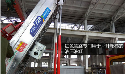 紅色管路專門用于舉升爬梯的液壓油缸