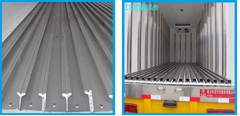 通風系統(tǒng):底板通風槽、廂內(nèi)四周通風隔板。 增強制冷機的冷風循環(huán)效果,安裝通風槽后貨物不會緊貼廂體側壁與廂底,通風槽材質(zhì)為鋁合金型材,結構簡單易清潔。運輸肉類或者藥品物品、箱體物品,需要加裝通風槽,防止變質(zhì)。
