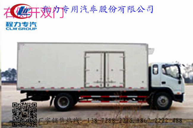 2.上裝配置:冷藏廂體內部有效尺寸:長2米×寬2.22米×高2.3米,廂體采用內外玻璃鋼,隨客戶選擇內置槽鋼焊接骨架或者玻璃纖維超輕高強度骨架,填充8cm聚氨酯保溫層,不銹鋼包角,不銹鋼門框,不銹鋼門鎖件,防滑花紋鋁底板,配后雙開門,車廂右側可以加開側門,-5或者-18度非獨立制冷機組,可選裝合資獨立制冷機組或美國原裝進口獨立制冷機組,選裝T型材通風槽,肉鉤,導軌等。