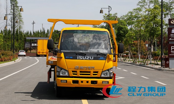 湖北程力國六五十鈴黃牌一拖二清障車(5.6米板長)程力威牌CLW5070TQZQ6型清障車廠家配置: 湖北程力五十鈴黃牌一拖二清障車配置: 采用五十鈴單排可前翻駕駛室,五十鈴120馬力發動機,5檔箱,油剎,帶ABS,冷暖空調,電動玻璃,中控鎖,7.00R16鋼絲胎。 4噸上裝4噸卷揚,25米鋼絲繩,雙側聯動操作,有花紋板及壓制板可選,配輔助小車一套,四根捆綁器。