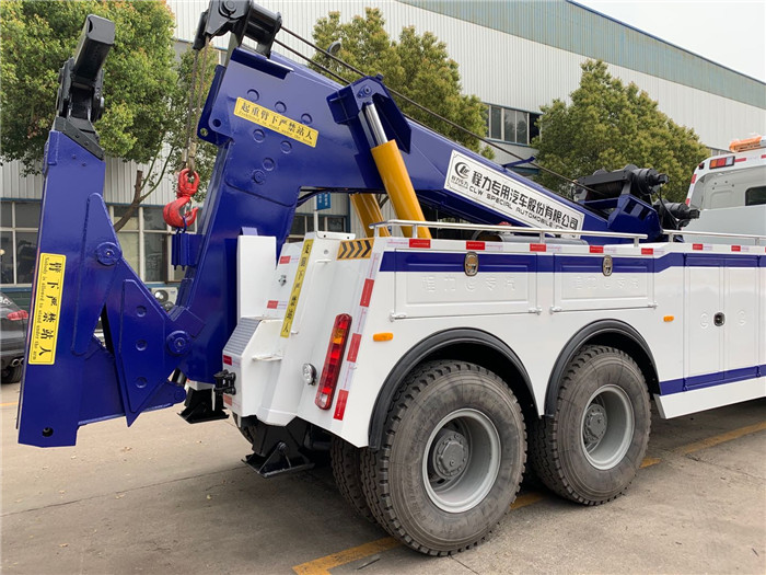 備注:ABS型號:4460046300;ABS生產企業:威伯科(上海)管理有限公司;發動機凈功率值:294/324kW;所用材料材質、連接方式以及后部防護裝置的主要尺寸參數(斷面尺寸和離地高度):側防護由車身結構代替,后防護由專用裝置替代,下緣離地高450mm;專用功能及裝置描述:該車專用裝置為吊拖連體清障裝置,吊臂可實現吊重作業,拖臂可實現提供起吊、拽拉功能;托舉質量(kg):19660kg;