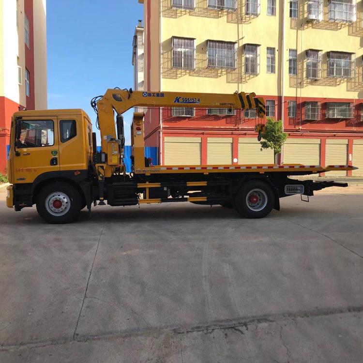 備注:ABS型號:J ABS,ABS/ASR-24V-4S/4M;ABS生產企業:焦作博瑞克控制技術有限公司,襄陽東風隆誠機械有限責任公司;選裝限速裝置;限速裝置限速(km/h):89;側后防護情況:側面防護裝置材料材質:Q235A碳鋼,連接方式:焊接連接;后防護由專用裝置替代,下緣離地高為(mm):410;專用功能及裝置:該車安裝起重吊機、平板機構、托臂裝置、牽引絞盤.用于道路故障車輛,城市違章車輛拖運及搶險救援等;托舉質量(kg):托舉質量(kg): 5140,4570與駕駛室準乘人數(人):2對應,5075,4505與駕駛室準乘人數(人):3對應;其他說明:該車尾部為翻轉樣式.整車長/前懸/軸距/后懸對應關系為(mm):9360/1260/5000/3100,8960/1260/4700/3000,8660/1260/4500/2900,10360/1260/5600/3500.隨車起重機型號/最大額定起升載荷(kg)/自重(kg)對應關系為:SQS157/6300/2270;隨底盤選裝駕駛室.
