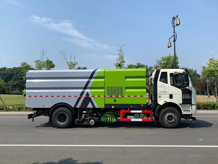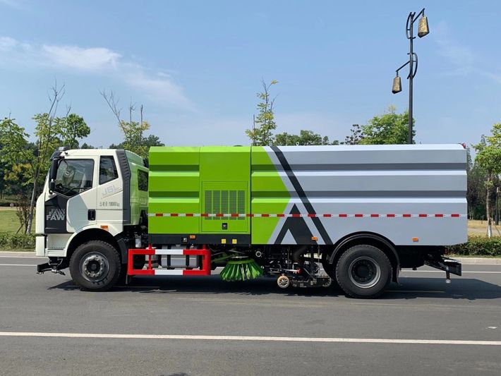帶2個(gè)中置掃盤(pán);中置超寬吸嘴;雙層吸塵筒; 康明斯170馬力副發(fā)動(dòng)機(jī);臺(tái)灣液壓閥;大力馬達(dá);德國(guó)高壓水泵 (前沖/側(cè)噴/中噴/后噴霧)/側(cè)沖洗水槍/垃圾箱自潔裝置); 萬(wàn)向高壓路沿清洗;威龍低壓泵(前沖),氣動(dòng)球閥控制; 4mm不銹鋼垃圾箱;不銹鋼水箱;德國(guó)控制器;尾部箭頭燈; 機(jī)油、垃圾箱、水箱均帶防溢或低位報(bào)警裝置;倒車(chē)及洗掃狀態(tài)室內(nèi)監(jiān)視器; 多種語(yǔ)音提示;倒車(chē)自動(dòng)保護(hù)、防傾倒垃圾翻車(chē)保護(hù)、檢修安全保護(hù); 20m高壓沖洗卷盤(pán);刷臂轉(zhuǎn)動(dòng)機(jī)構(gòu)使用德國(guó)進(jìn)口高新耐磨工程隔套,免打黃油; 冷彎無(wú)縫液壓油管;運(yùn)動(dòng)控制器一鍵電腦控制。洗掃寬度3.5m;吸入粒度p110mm。 湖北程力國(guó)六解放洗掃車(chē)多方位圖片: