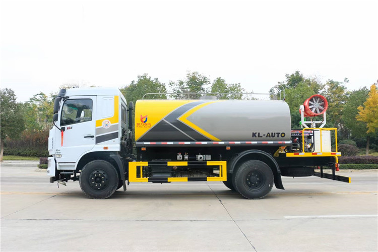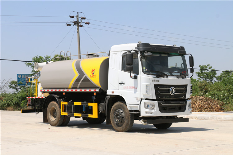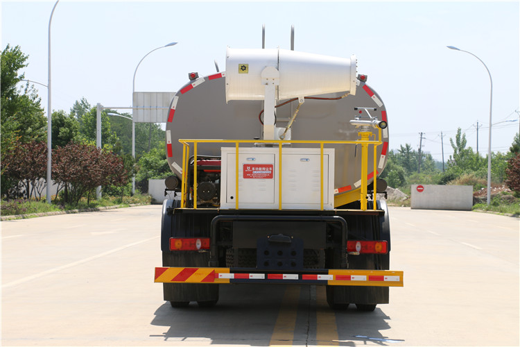 國六東風華神F5綠化噴灑車(12方帶霧炮灑水車)國六東風華神F5 灑水車基本配置, 軸距3950 mm, 玉柴165 馬力國六柴油發動機,陜齒小八檔(帶高低速),9.00R20輪胎,2.8T前橋,7.8T后橋,原裝空調,氣囊座椅,鑰匙,電動玻璃。采用大流量水泵60-90,基本灑水功能前沖、后灑、側噴、工作平臺帶高炮(可調節成霧狀、直柱狀)、可泵進泵出、罐體兩側炮筒、帶兩根抽水軟管,上裝標配,罐體自動焊,大梁不動焊
