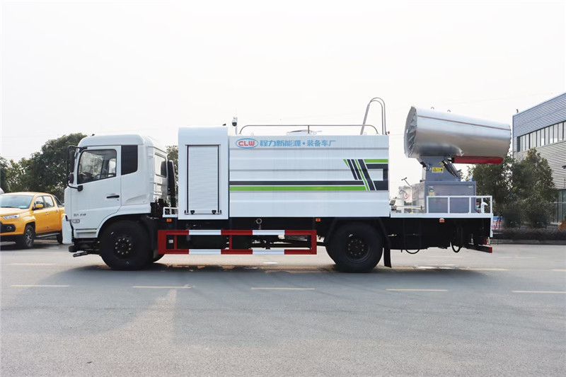 湖北程力國六東風(fēng)天錦60-100米抑塵車(方罐)程力威牌CLW5181TDYD6型多功能抑塵車廠家配置: 湖北程力國六東風(fēng)天錦抑塵車底盤配置:底盤采用東風(fēng)天錦國六底盤,公告型號:CLW5181TDYD6,康明斯6缸ISB210馬力發(fā)動機,4700軸距,275真空胎,6檔變速箱,原裝空調(diào),ABS。 湖北程力國六東風(fēng)天錦抑塵車上裝配置:罐體容積11.3立方,罐體為方形罐,罐體內(nèi)部做防腐,罐體鋼板采用Q235碳鋼鋼材,整車具備灑水車的一切功能(前沖、后灑、側(cè)噴、平臺高炮),氣動球閥控制灑水功能,水位報警器,標(biāo)配億豐60/90水泵,自流閥及消防接頭各1個、水管2根。后平臺安裝一臺60米霧炮。 湖北程力國六東風(fēng)天錦抑塵車霧炮參數(shù):CLW-100型60米,副發(fā)電機組功率50(Kw),風(fēng)機功率15(Kw),不銹鋼多級離心泵功率5.5(Kw)。100米無線遙控操作,霧化距離60米(靜風(fēng)室內(nèi)距離)實際射程:(霧化射程會受濕度、溫度、風(fēng)速等各方面天氣因素的影響,另外天氣干燥地區(qū)一部分在空中被蒸發(fā)掉)。 | 湖北程力國六東風(fēng)天錦60-100米抑塵車(方罐)程力威牌CLW5181TDYD6型多功能抑塵車圖片價格:
